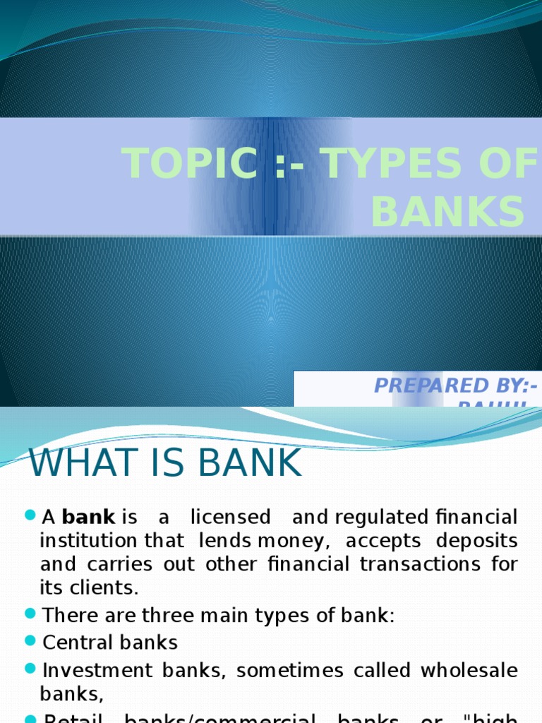 The first type is time deposits in which an account holder gives the bank money for a fixed period of time and therefore does not have any right to ask for money before the maturity date has been reached. Investment banks provide services to corporations, governments, and individuals. Both types of banks offer. There are four types of banks in the usa: 1 commercial banks focus on business customers. Retail properties can also include outparcels, where a part of the land is designated for individual tenants such as fast food chains, banks, or other standalone retailers. Retail banking is the visible face of banking to the general public while corporate banking refers to the aspect of banking that deals with corporate customers. Types of retail banks retail banks come in a variety of types and sizes, from local community banks, which are small, locally run banks to the retail banking services of large, global corporate. Within the retail banking industry, there are specialized subdivisions of banks that exist either to offer a smaller more targeted set of products or to serve a specific. Commonly, large commercial banks have local branches to meet various objectives of retail banking. In addition to retail banking, the other major types of banking include: These banks are often termed as people's banks as they cater to the needs of the general public. They are commercial banks, credit unions, and certain investment funds that offer retail banking services.